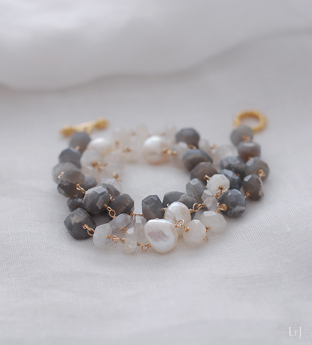 惜しみなくムーンストーンを使った、ラグジュアリーなだけではなく、私個人としても大好きな一点です。いろいろなネックレスとの重ねづけにも出来て、この一点でも天然石アクセサリーの魅力をダイレクトに感じて頂けることと思います。 iichi の画像掲載制限5枚には載せきれないものもあり、 LeJ のホームページ内にアクセサリーページを作りました。メールでのご注文も承ります。