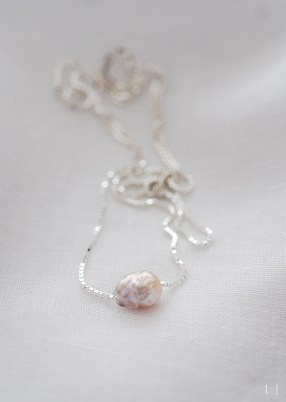 2点目に作った、15mmもの大きなバロックパールをシルバー925のチェーンに通した、82cmのロングネックレスも、もうすぐアクセサリーページを作ります。金属パーツの高騰が著しいこの時期に、無垢のシルバー925素材はとても贅沢なもの。でも、それが必要だと思う時には使いたいと思います。フェミニンなコーディネートにも素敵だけれど、着慣れたTシャツとかチュニックとか、ダメージ加工のデニムやパンツに合わせると、意外性があってどきっとさせそうです。例えば、インディゴブルーのダメージにコサージュみたいなブローチが、ボヘミアンのようで素敵なように。