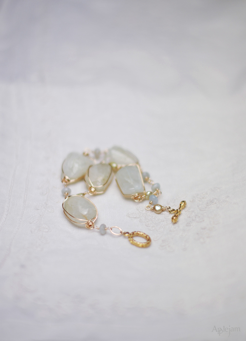 長い間手元に置いていたアクアマリンをすべて使った制作。毎日の通勤にというようなアクセサリーではなくても持っているだけで幸せになれるようなアクセサリーがあると、私は思います。いつもそんなアクセサリーを作りたいけれど、それはいろいろな条件が揃う時だけのものです。