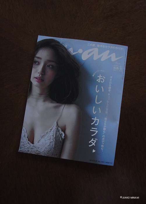 写真は、an.an誌。新しい号が出ているので、少し前のものです。なぜ diary に載せるのかと言うと、表紙があまりに素敵だからです。松島 花さん。普段はテレビをまったく観ないので、彼女のことは知りませんでした(汗)けれど、あまりに、あまりに素敵なカバーなのでそのためだけに買ったan.an、何十年ぶりのことでしょう。でも、きっと永久保存版になります。