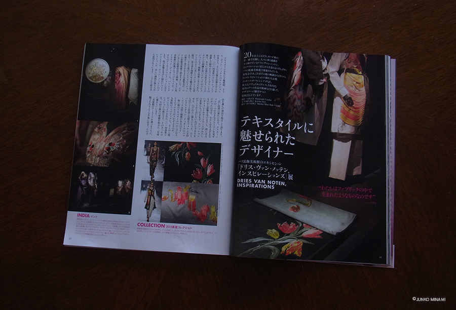 雑誌も整理しました。ミセス誌5月号に、たまたまこの二枚の写真のページがあって、なぜ今頃になって見つけたのかよく分かりません。でも、パリに着いたら真っ先に行くイベントなので、このあと切り取ってファイルに挟み、バッグに入れました。この、雑誌の切り抜きだけでも分かる、素晴らしいテキスタイルの色調。