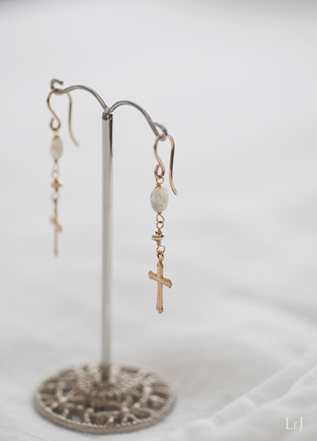 クロスパーツは、いつもよく選んで使っているLeJの、大人の女性にぜひ着けて頂きたいピアスです。クロスパーツは縦12mm。ホールからの長さは45mm。メタル素材のイヤリングにも交換致します。お気軽にお申し付け下さい(無料)。