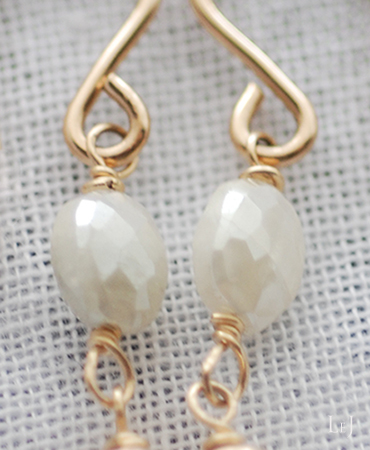 LeJ のアイコンネックレス “J” にも使っている白く美しい天然石、シリマナイトを14Kゴールドフィルドパーツと合わせて作ったピアス。