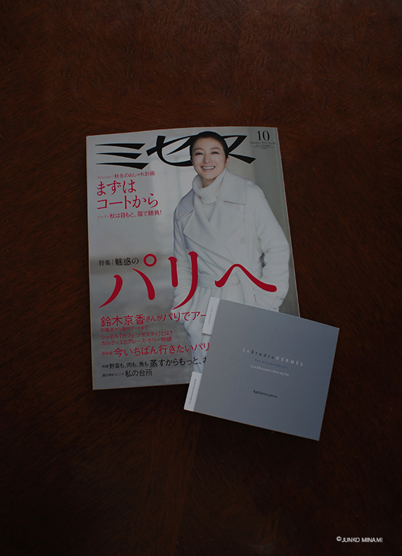 昨日の diary で書いていた、ミセス誌10月号と銀座メゾンエルメス『 哀悼の石 』のリーフレットの画像です。美しいものは、こつこつと、忘れないうちに残しておきたいと思います。
