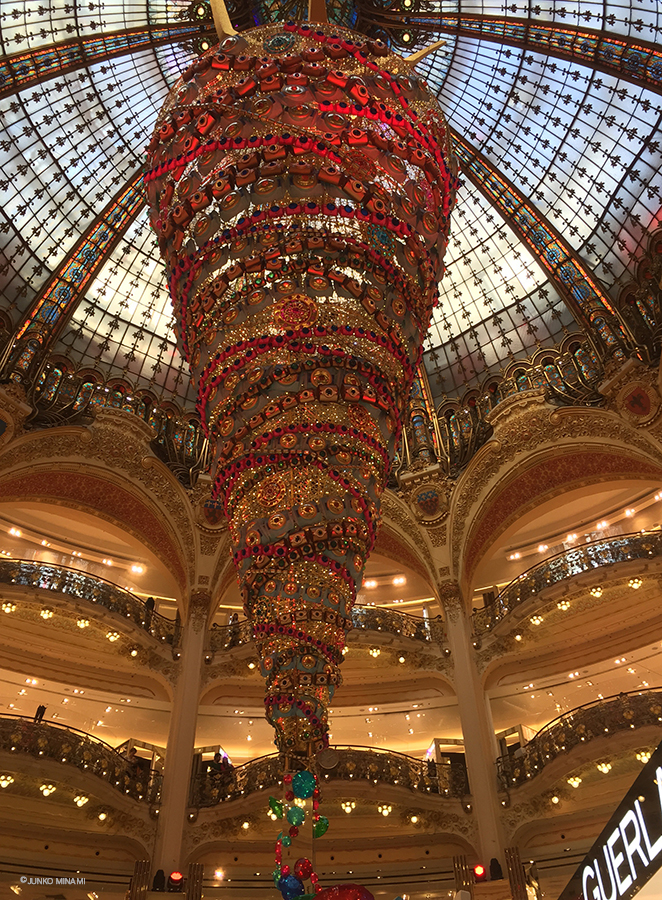 写真は、iPhoneで撮ったギャラリーラファイエットのクリスマスデコレーション。綺麗で可愛くて、そしてシックです。