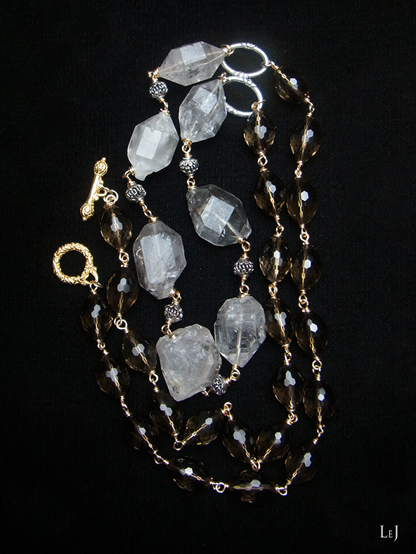 身に着けて頂くと、ネックラインのスモーキークオーツが、美しく自然に、バストラインに沿います。