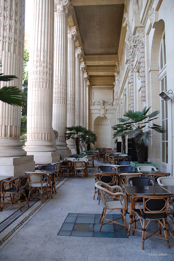 写真は、パリのグランパレと言う建物のなかにあるレストランで、”ミニパレ”。シェフはホテル”ル・ブリストル”を手掛けるエリック・フレション。先月の北斎展とバカラ展との合間に予約を取って行きました。楽しみだったのはお料理だけではなくて、このテラス席の設えもでした。