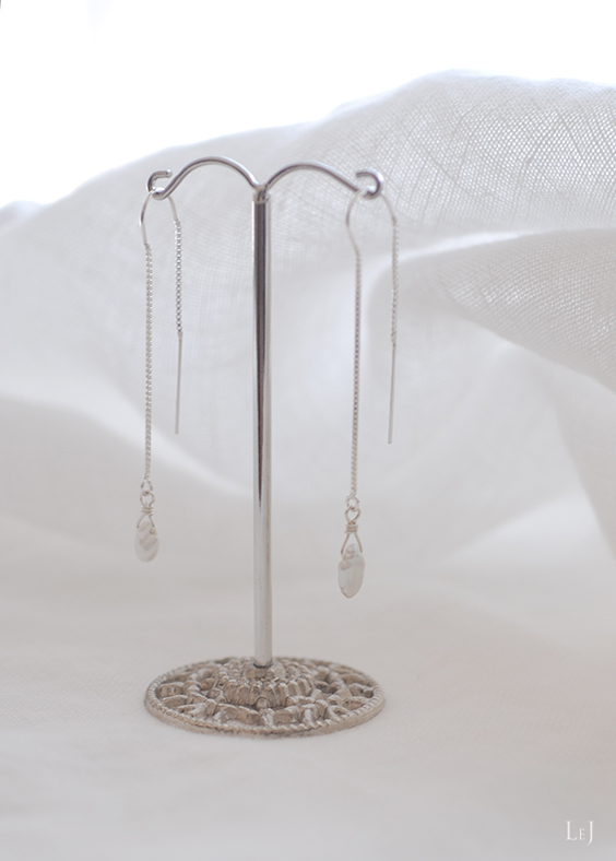 久しぶりに、パールとシルバー925を使ったチェーンピアスを作りました。チェーンピアスはお顔のすぐ横に縦のラインを作るので、小さな天然石を引き立てながらも印象的な空気感を作ります。