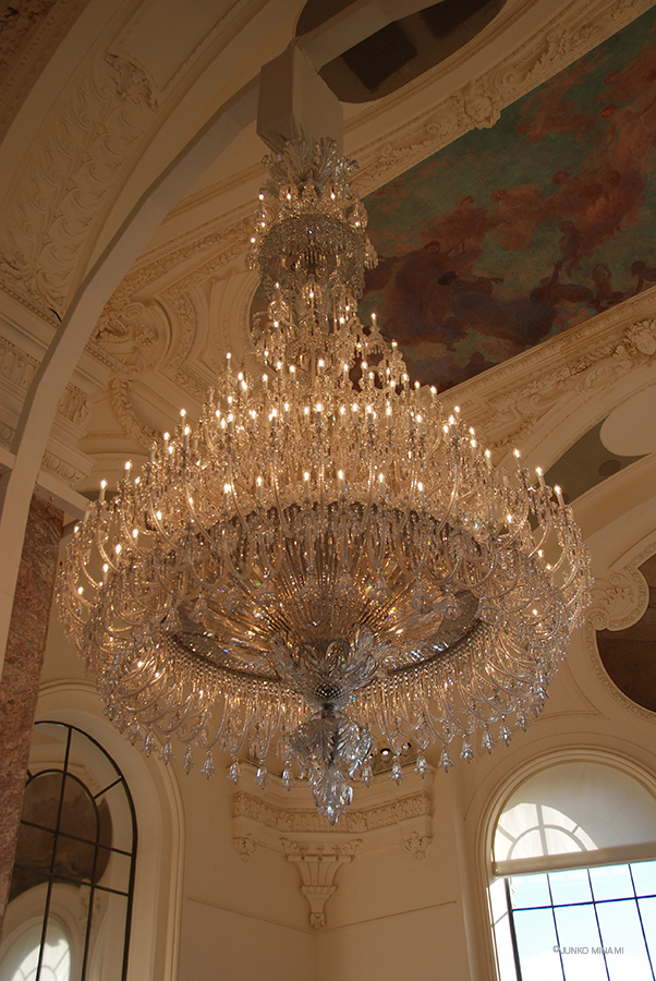 写真はバカラ展のもの。メインエントランスのシャンデリア。