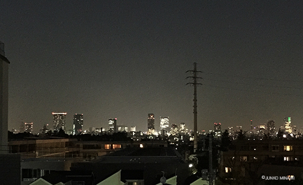 明日は27℃まで気温が上がる予報。写真は、iPhoneで撮った、マンションから見た都心の夜景。うまく撮れていませんけれど、とっても綺麗でお気に入りです。