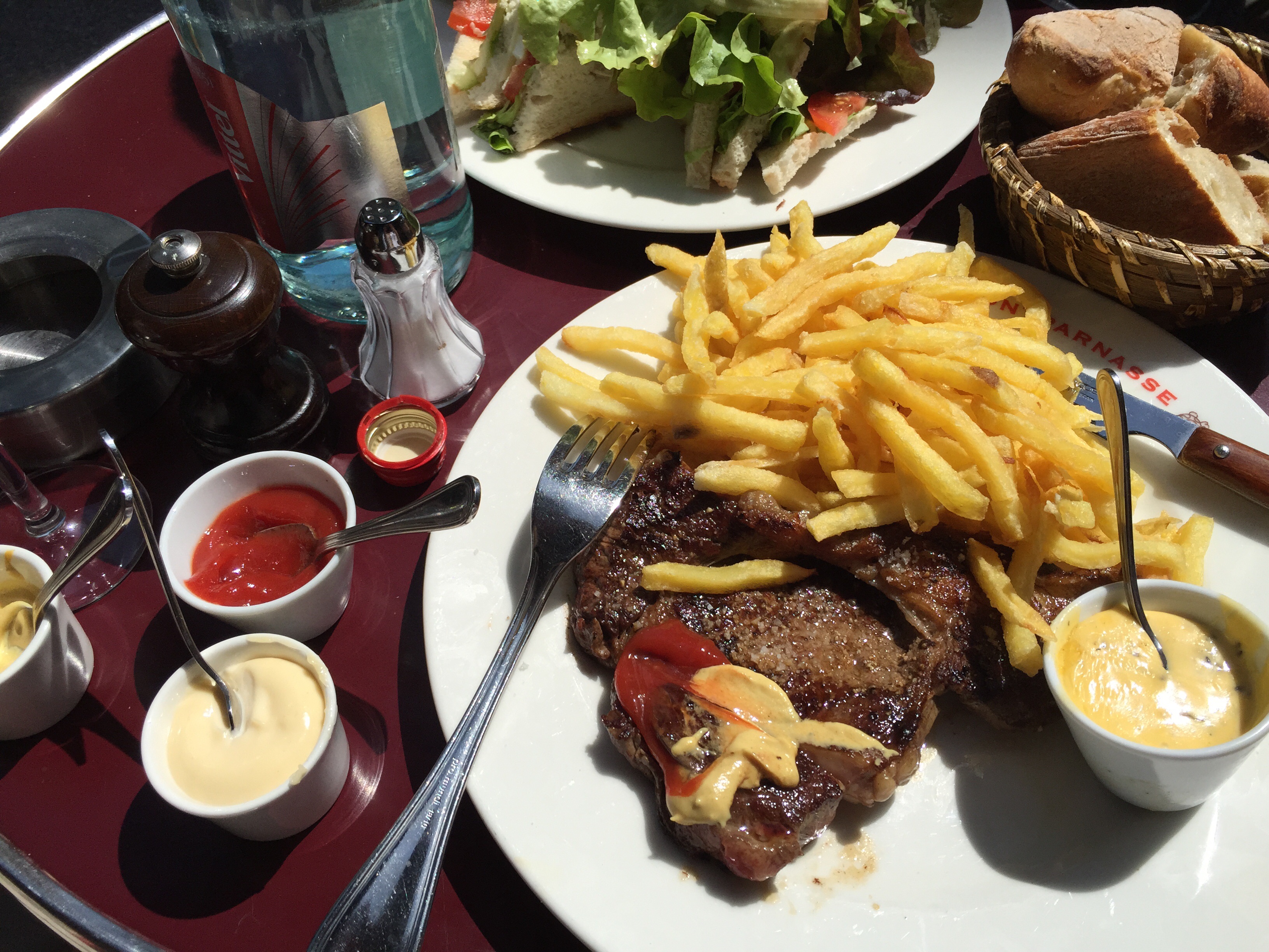 写真は、サンジェルマンデプレ教会と、モンパルナスでのランチ。このプレートは、日本円で1,500円くらい。旅には体力も気力も使うので、いつもすべてぺろりと平らげてしまいます。