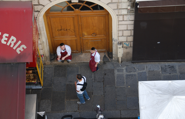 8時過ぎ。少しベッドでうとうとしてからバルコニーに出ると、街も起き出したようなひとときでした。仕事前のパリジャンがタバコを吸っています。パブリックスペースでは禁止になったタバコも、相変わらずのパリジャンは禁煙に向かう様子もなく、ぽいっとタバコを投げ捨てるのも変わりません(笑)