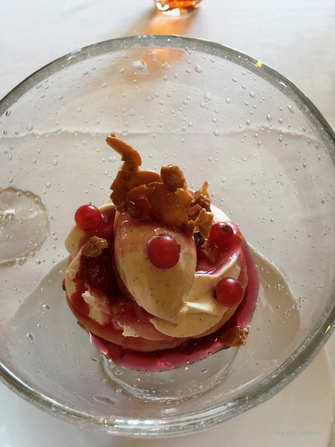 写真は、iPhoneで撮ったブノワでのデザート。この中には、白桃が微睡んでいます。お料理をいつもすべて撮ることはしませんけれど、素晴らしいアートに出会うと残しておきたくなります。