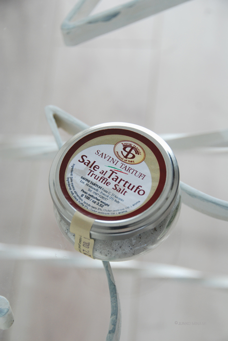 写真は、トリュフ入りの塩。海外で買うと1,000円くらいで、日本国内になると二倍から三倍くらいになります。ヨーロッパに行くと、スパイスや乾燥きのこ、バターなどを買います。食べ物に敏感になったのはヨーロッパでご馳走ばかり食べているからではもちろんなくて、自分たちで調理する、半月や一ヶ月単位のバカンスを過ごしてから。