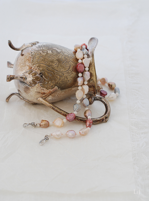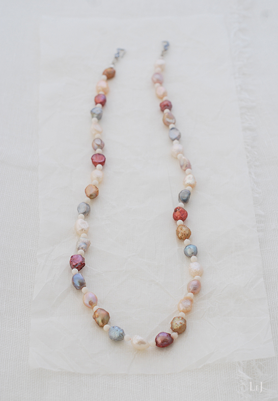 ミルキートーンのバロックパールとホワイトコーラル。落ち着いた、肌に馴染むシルキーな輝きのパールとまろやかなコーラルがとても愛おしい、手にとってずっと眺めていたくなるネックレス。ふわりとしたセーターややわらかなシャツに。大人の女性のデコルテで静かな華やぎを添えるアクセサリー。
