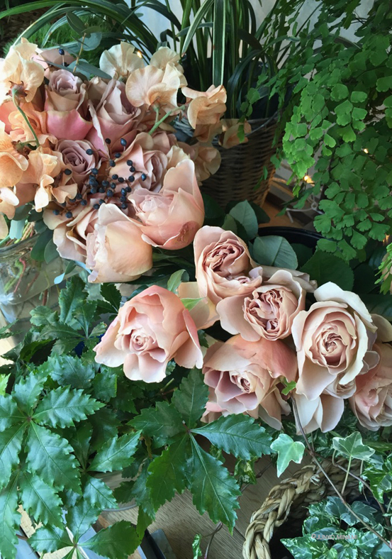 少し前にいつものお花屋さんの前を通ると、少し変わったいろのチューリップやヒヤシンスやムスカリなどの花が、店内への小径を作っているかのようでした。