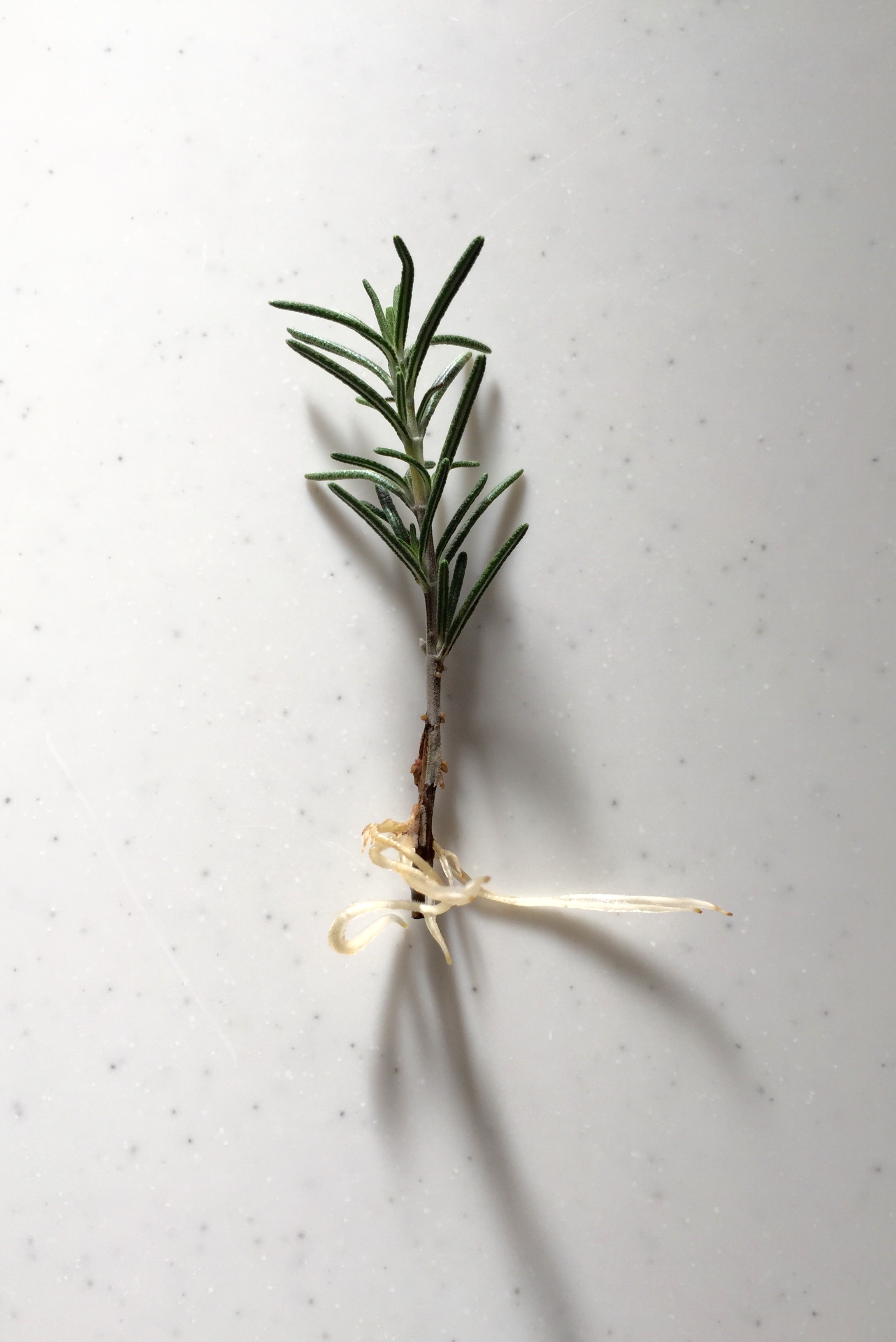 キッチンの窓に置いていたローズマリー。二ヶ月くらい前、肉を焼くときにひと枝だけをクリーマーに挿していました。留守にすることを考え植物を置くことを我慢していながら、緑がほしくてささやかなグリーンとして楽しんでいました。枯れる様子もない、でも育つ様子もなく、静かな存在でした。