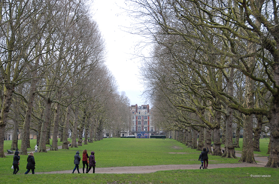 写真は、ロンドンのグリーンパーク。あのなだらかな道と緑が胸に残っています。