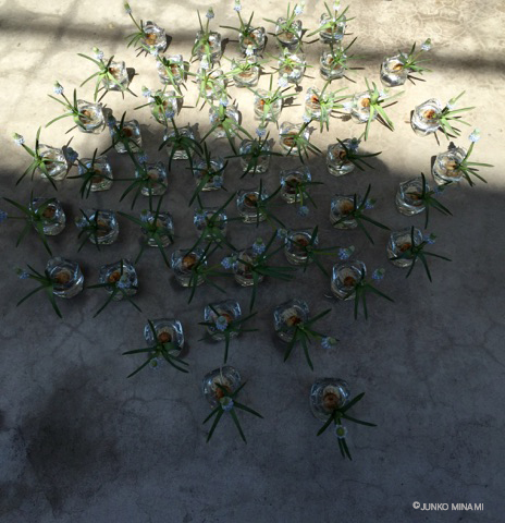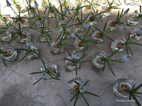 いつもの花屋さんの店先にて。チューリップとムスカリ。