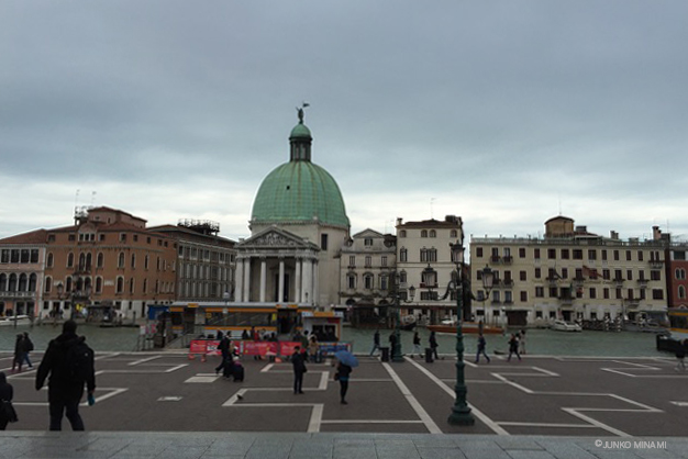 車窓からの眺めを楽しんでいると、あっという間。ヴェネツィアはイタリアの北東に位置する街で、ヴェネツィア湾に出来た潟(かた・ラグーナ)の上に築かれ、7世紀の終わりから1000年間以上も海洋貿易で栄えました。ここに向かうのは二度目、一度目は30年も前のことで断片的な記憶があるだけでした。