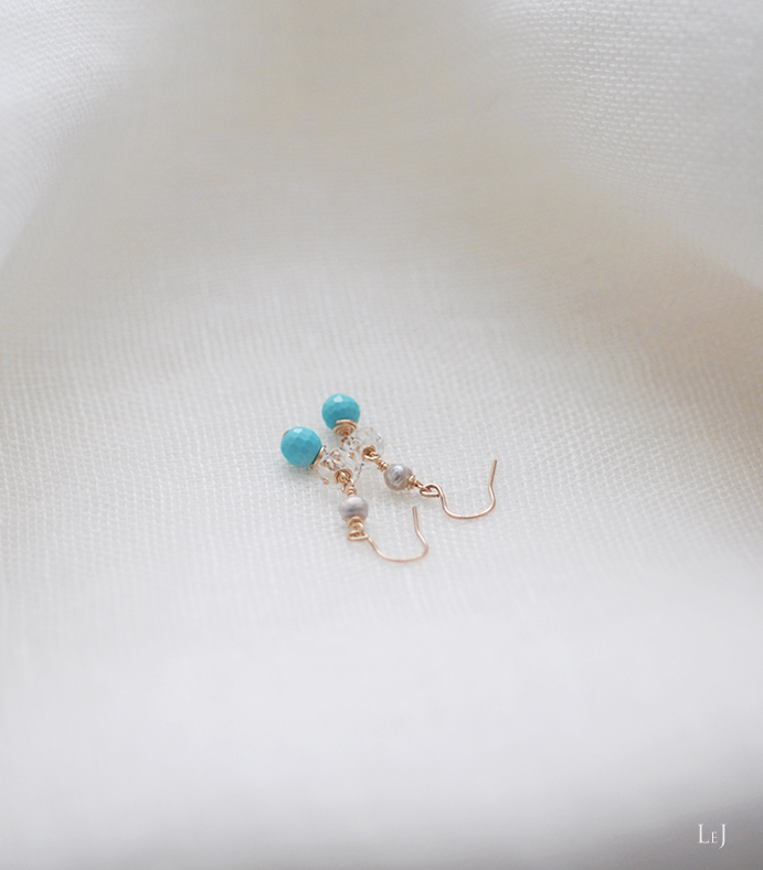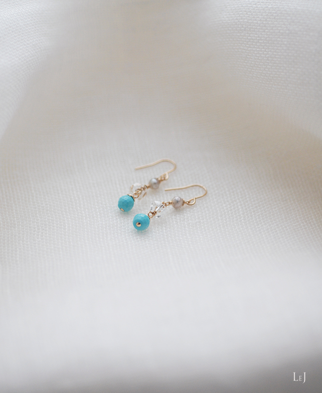 pitti2は、pitti1とおなじ、小さな光沢を放つターコイズを使ったピアス。