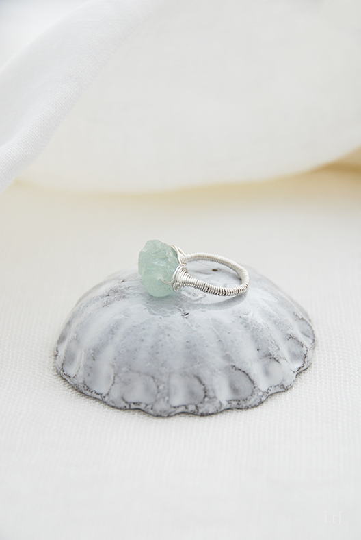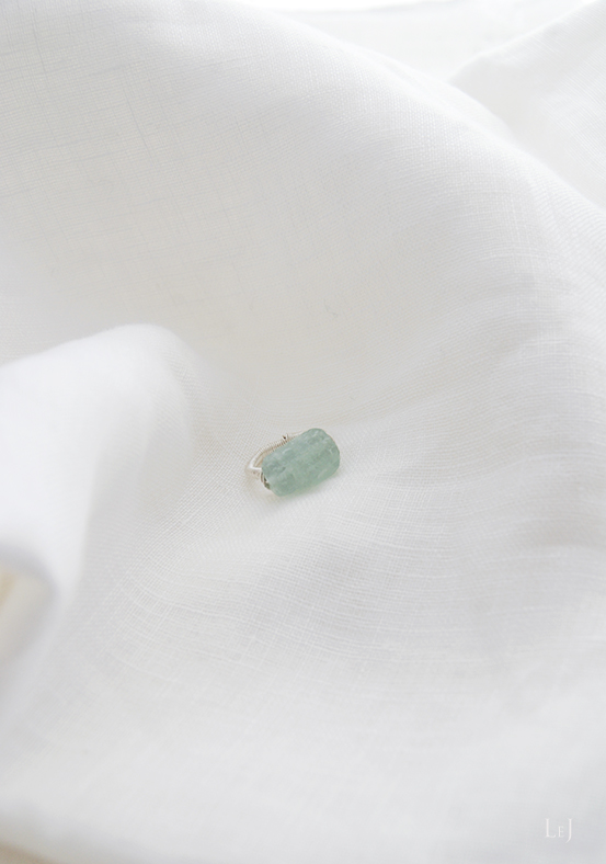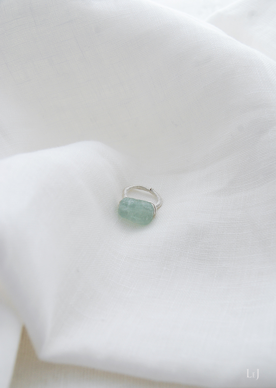 LeJがとても大切にしているアクアマリンの大粒タンブルを、シルバー925のワイヤーでリングにしました。