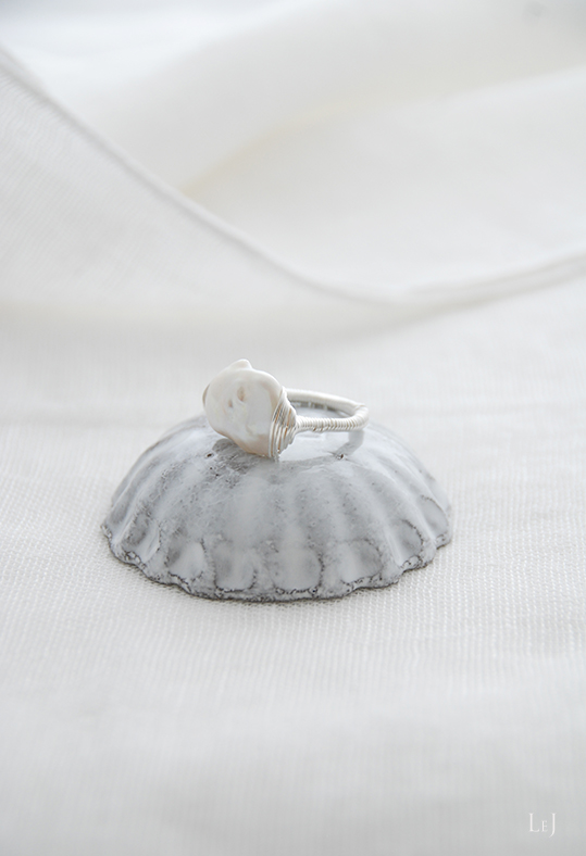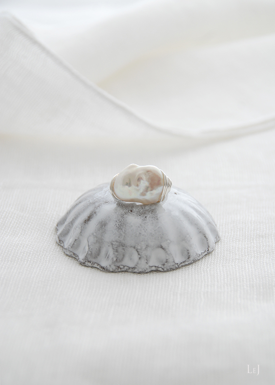 Fiore6は、まろやかなクリーミーホワイトのパールをくるんだリング。