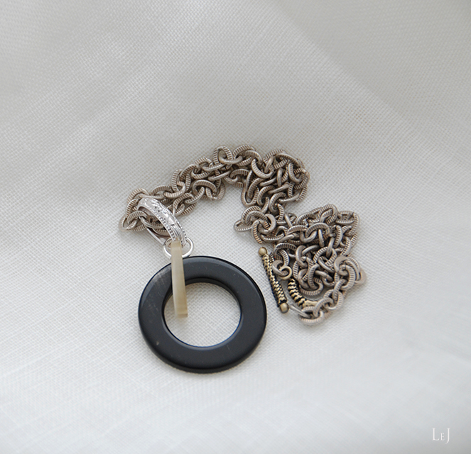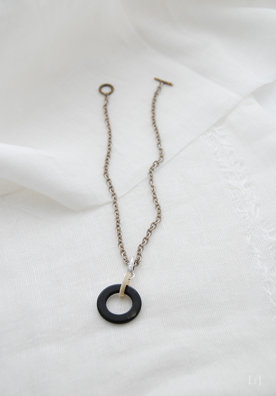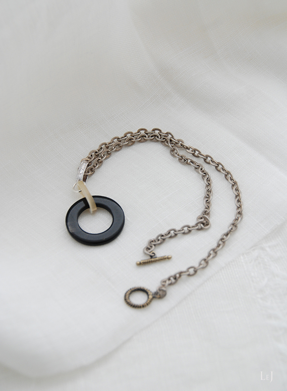 ボーン素材はLeJがよく使う素材で、今までにもブレスレットやピアスを数多く作って来ました。何度も再制作をしてお届けして来たアクセサリーにもコーディネートして楽しんでいただけるネックレスです。ボーンのほか、アクアマリンやターコイズ、パールなどいろいろな素材にぴったり合います。