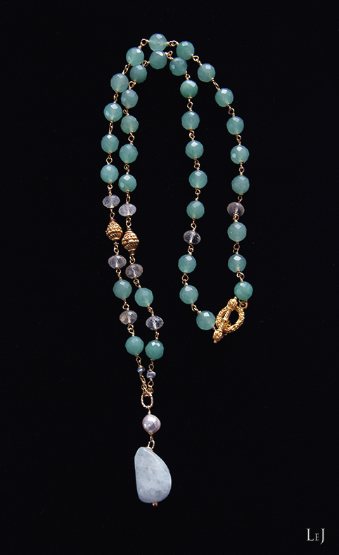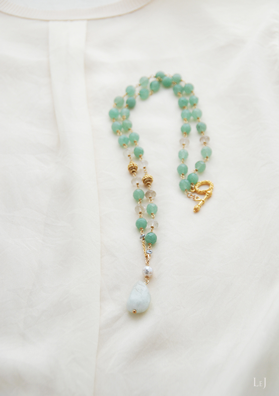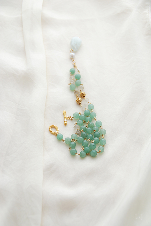 Véronique(ヴェロニク)は、みずみずしいグリーンとトップのアクアマリンが溶け合う、とても美しいネックレス。
