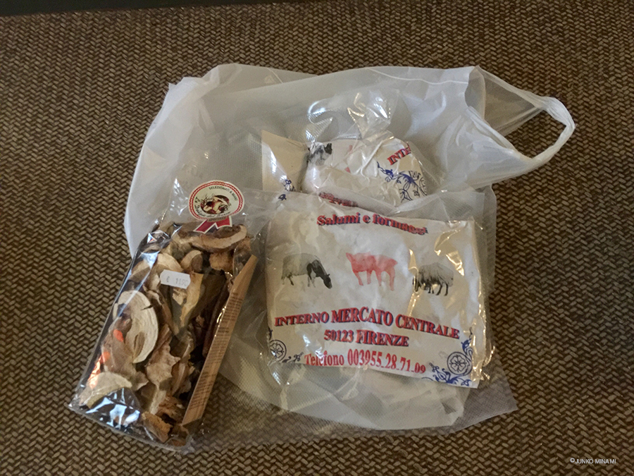 メロンのことを書いたところで、写真はフィレンツェの市場。生ハムを買ったのですけれど、値段の相場が分からなかった最初、店員の女性に何グラムいる?と聞かれて「50ユーロ分くらい!」と言ってみたところ、それはこの塊全部よと言われて5ユーロ分だけ買いました。買い終えて写真を撮っていたら気づかれてしまい、わざわざこちらを向いて愛嬌を振りまいてくれました。これがイタリア人気質です。