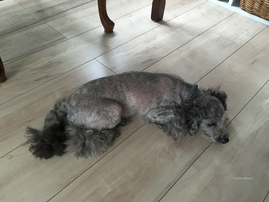 穏やかな性格で、優しさに溢れた仕草はみなに愛されます。久しぶりにゆっくり会えて、嬉しい日でした。選挙から帰ると、暑さに参ったのか、テーブルの下で寝入ってしまいました。