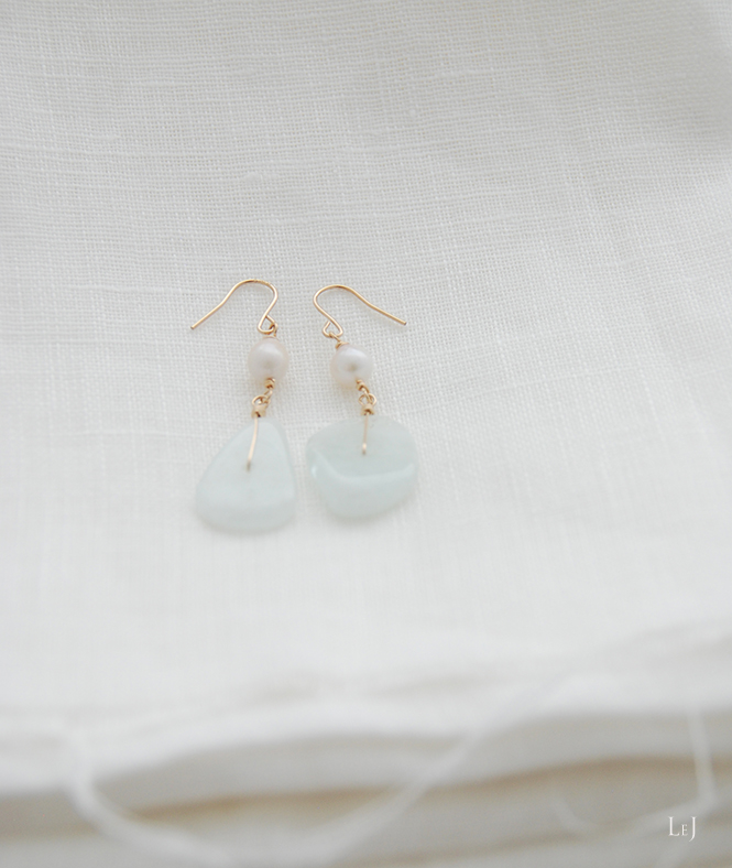 ほんのりと優しい雰囲気のアクアマリンは、シャーベットのようなペパーミントブルー。ほのかな光沢のあこやパール、ゴールドと溶け合って、唯一無二のアクセサリーになりました。