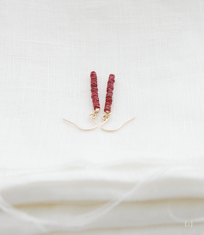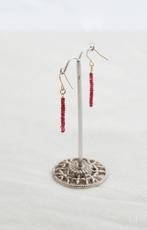 長すぎず短すぎず、ほどよい長さのバー形状のAmalfi7は、ピアスホールからの長さ40mm。きれいな連を買えたので、数点制作出来るかと思います。金属パーツはK14ゴールドフィルド。