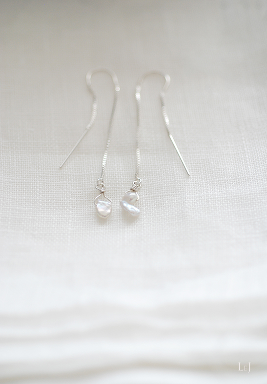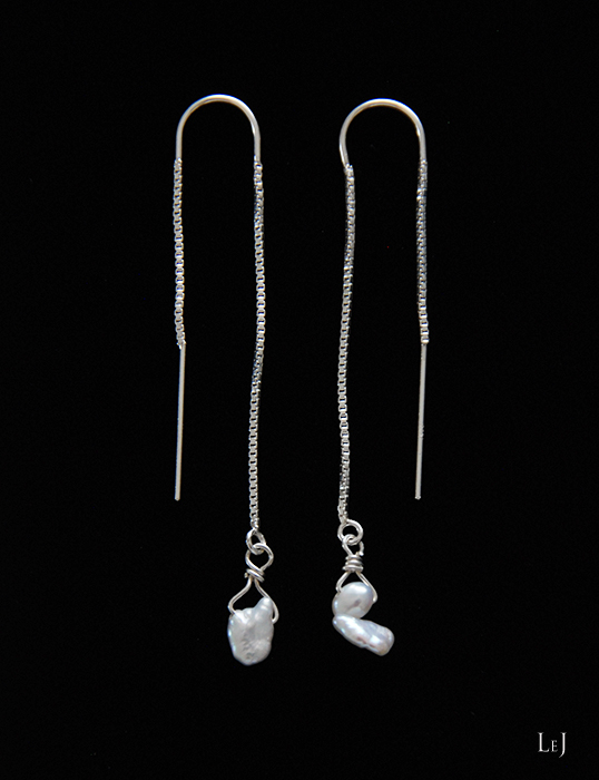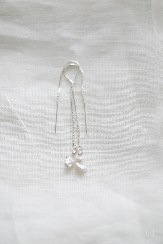 お手持ちのシルバーのチェーンやバングル、パールのネックレスなど、コーディネートしやすいピアスです。ピアスホールから、前側に下がる長さ58mm、後ろ側の長さ40mm。