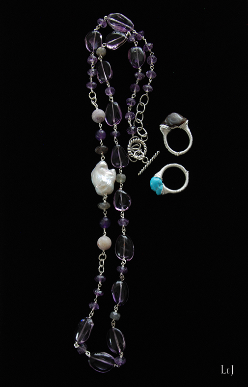 ネックレスは、 Sicy 。そして、 リング のページへもどうぞ。パープルは日本女性が敬遠しがちな色ですけれど、大人の女性だからこそ似合う、とてもエレガントな色です。そして、ターコイズやブランデー色との組み合わせ。イタリアンカラーと言えるでしょう。
