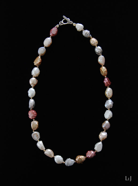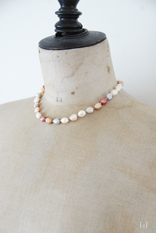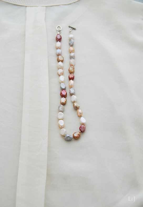 このパールがとても好きで、SienaそしてSienasoloと、これで制作は3作目。自分でも、このパールでロングネックレスを作って着けています。