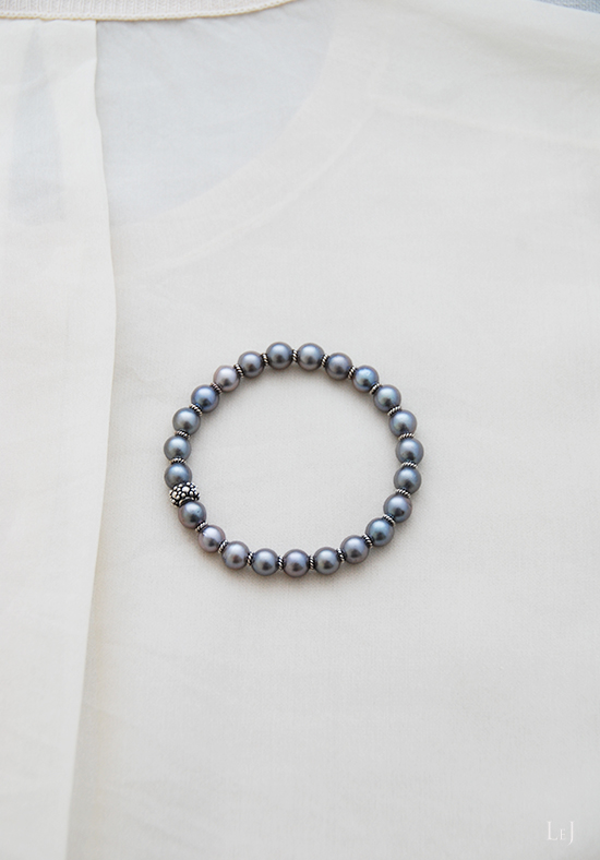 perle griseネックレスと同じあこやパールで作った、シリコンコードを使ったバングル形状のブレスレット perle-grise-b-ペルルグリーズ-ブレスレット