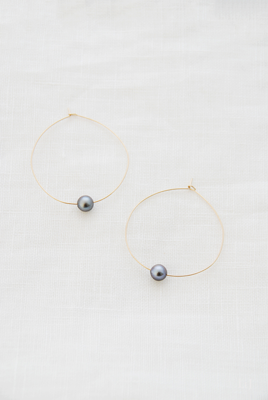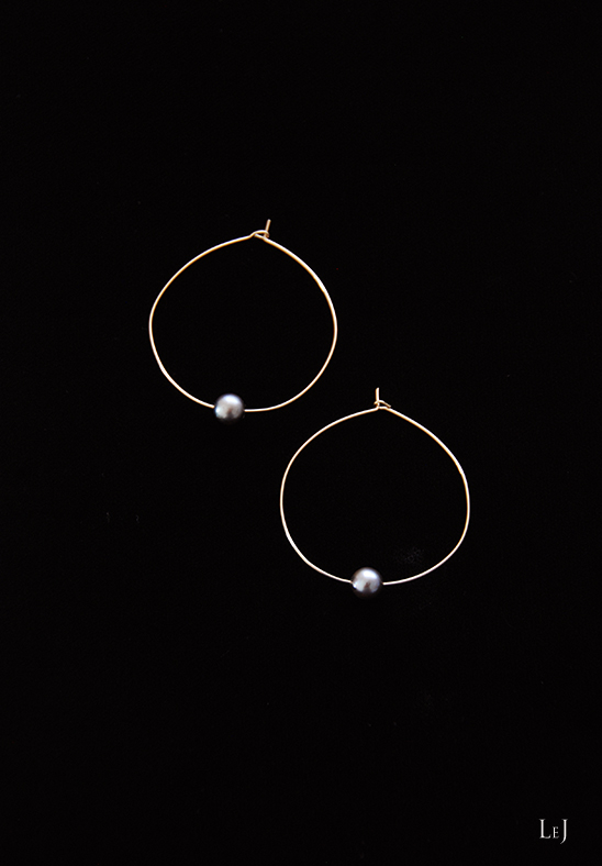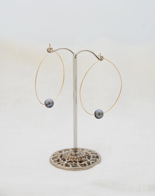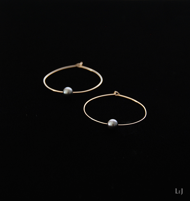 perle griseネックレスと同じあこやパールで、フープピアスを作りました。