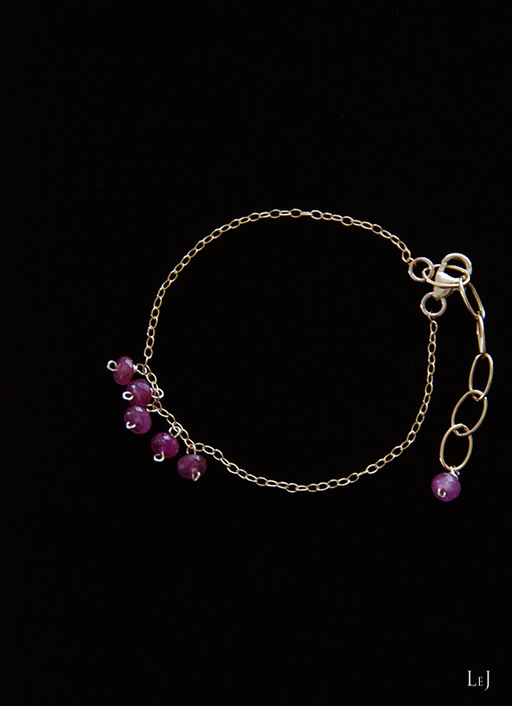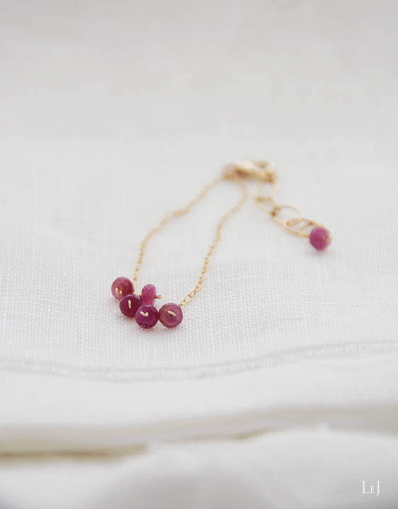 couture5(クチュール5) で使っているサファイアをブレスレットにしました。お手持ちのブレスレットと重ね付けをしたり、couture5(クチュール5)ピアスとコーディネートして、カシミアやふわふわしたセーターにも。リップの色を合わせて、大人のスイートに。