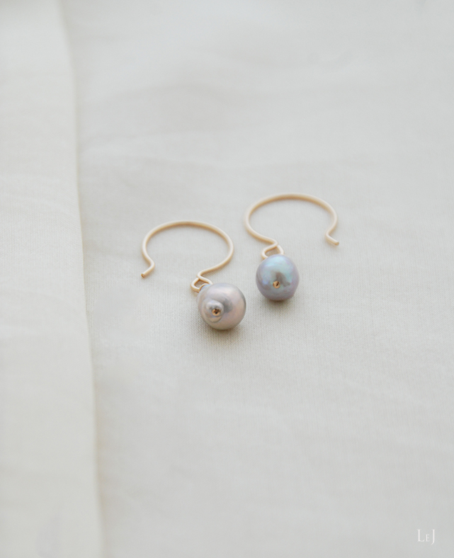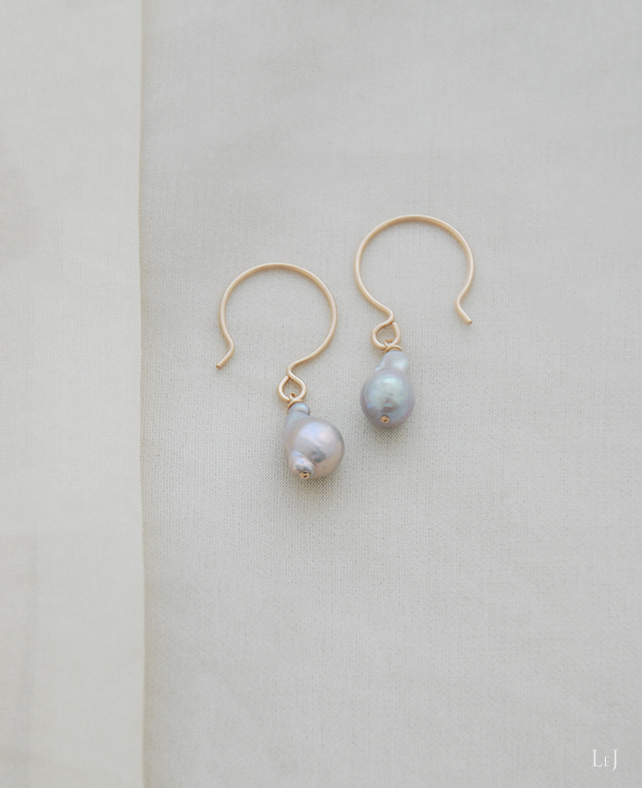 ライトシルバー色のバロックパールをピアスにした、perle2(ペルル2)。