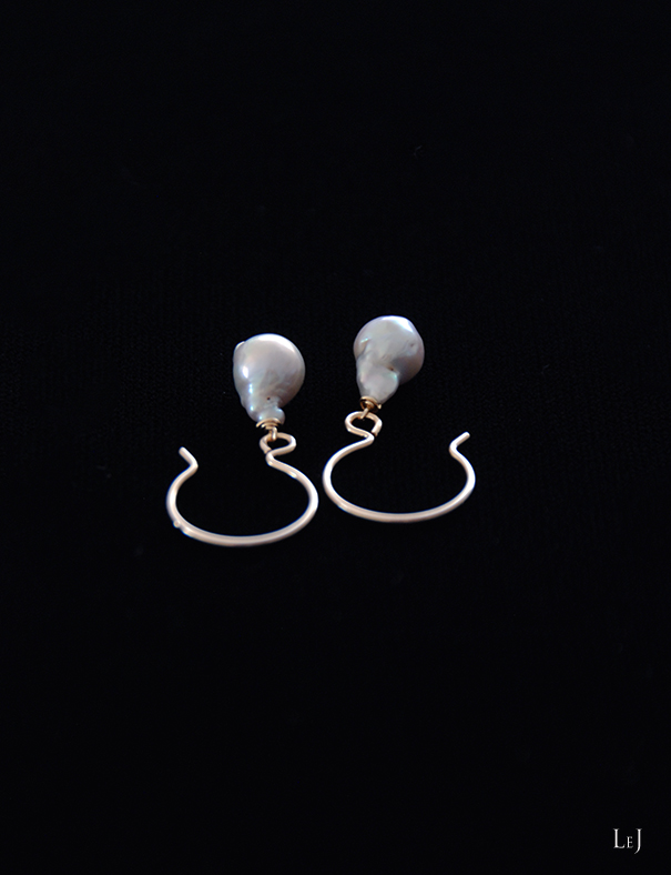 優しいフォルムのバロックパールは、LeJが得意とする素材のひとつです。やわらかで穏やかな光沢が女性の肌に光を添えて、円弧を描くパーツが独特な空気感を作ります。極力シンプルに制作して、素材が持つ魅力をそのまま活かしたいと思うパールです。