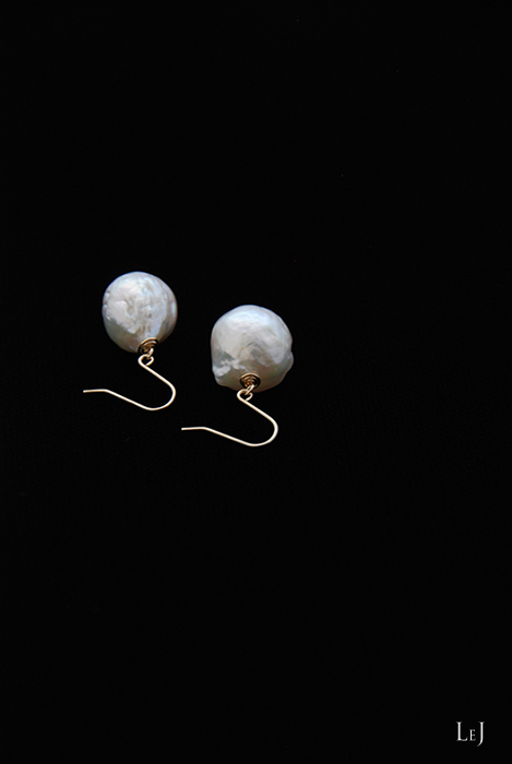 やわらかなクリーミーホワイトのバロックパールが持つ有機的な優しさは、独特のものです。そのドラマティックな美しさを、ぜひ画像でご覧ください。ピアスにしたのは12mmの大きなパール、ピアスパーツはK18を使いました。