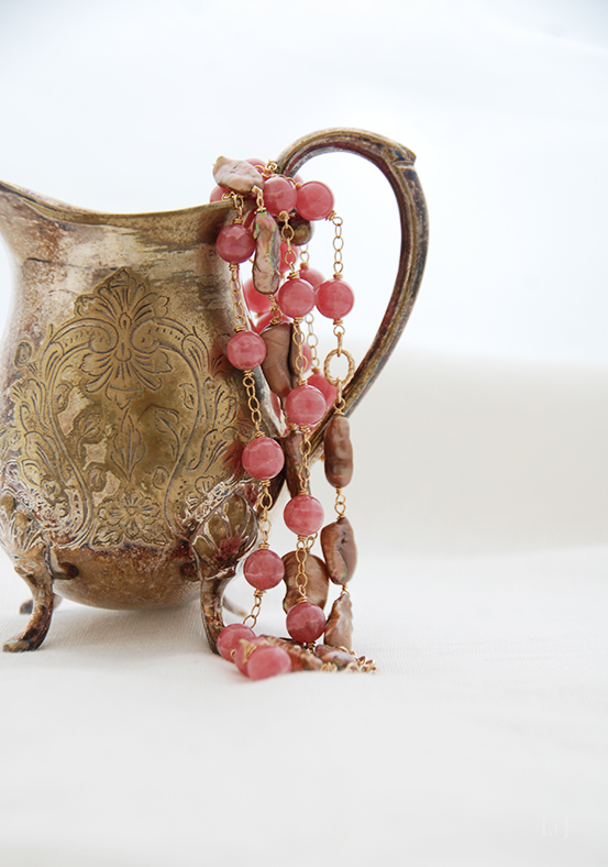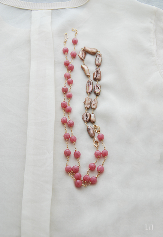 ミルキーピンクのロードクロサイト(インカローズ)とメタリックゴールドブラウンのけしパールのネックレス、 Josette(ジョゼット) のアクセサリーページを公開しました。