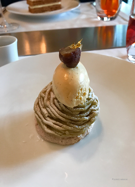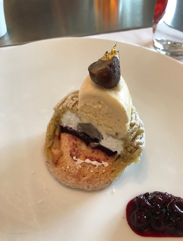 でも、この店なのですから(笑)スタッフのかたの熱い説明を聞いてオーダー。テーブルにやって来たのはこの写真の愛おしいモンブラン、カシスソースが極上の幸福感へと誘うのでした。普段あまりお料理の写真は撮りませんけれど、これは残しておきたい気持ちになりました。