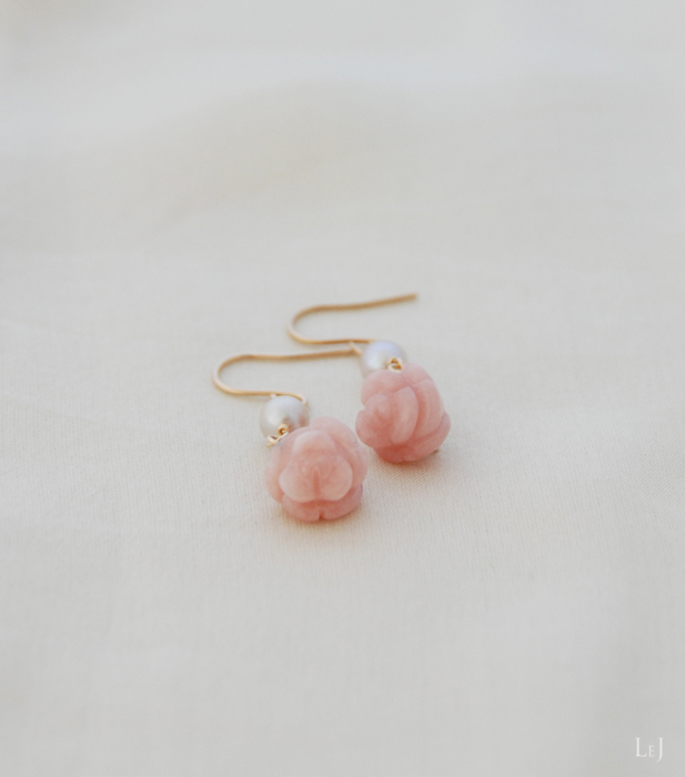 ピンクオパールを丁寧に薔薇のかたちにハンドカット、あこやパールと合わせたスイートなピアス、 rosé(ロゼ) のアクセサリーページを公開しました。