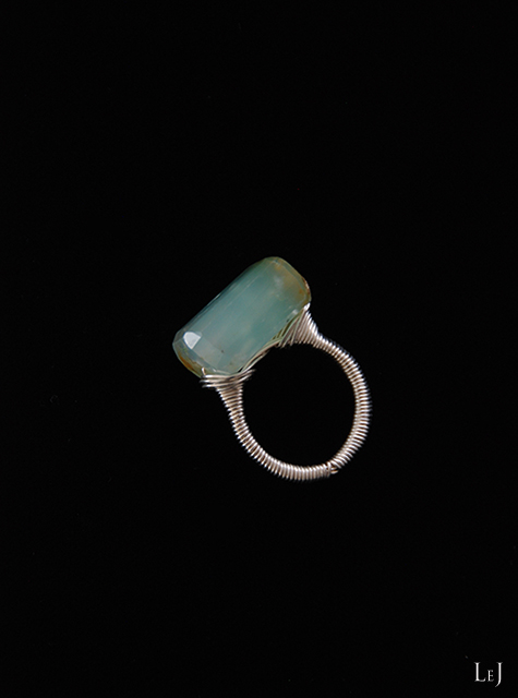 やわらかなグリーン、シャープなカットのブルーオパールをしっかりくるんでリングにした、Fiore20。