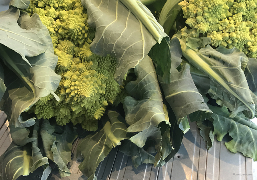 写真は、ロマネスコ。カリフラワーの一種で、パリの、ちょっと高級な食材を扱うマルシェで見掛けます。