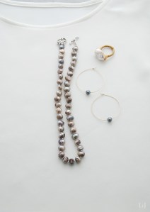 温かみのある色調、ラフバロックの形状に合わせたシルバー色パーツがバランスを生み、大人の女性のデコルテに映えるアクセサリーになりました。