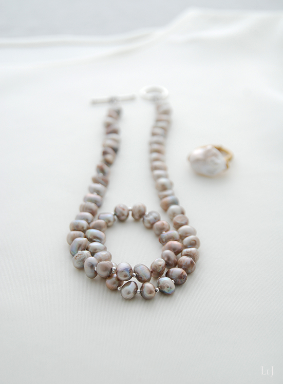 ウォームシルバーのバロックパールをシルバー色のパーツに溶け込ませた、有機的でエレガントなショートネックレス Bellini(ベリーニ)ショートネックレス
