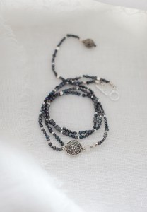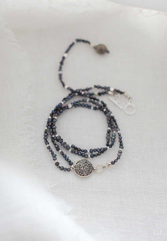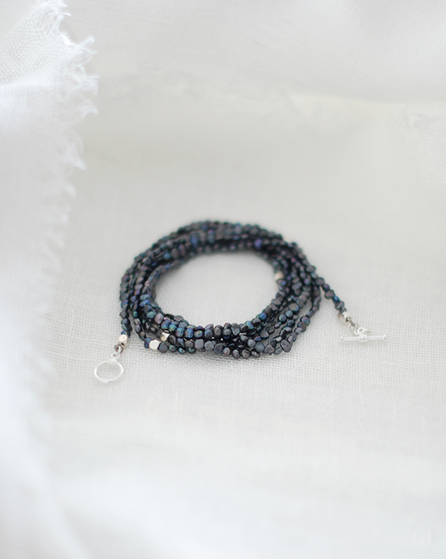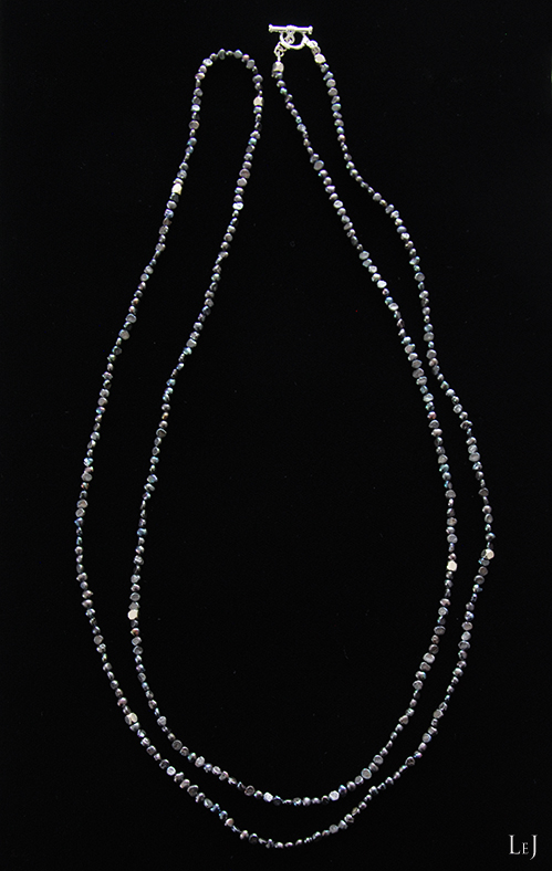一連で着けるとエレガント、3連にしたり3連にしたり、6連のブレスレットとしてもお使いいただけるもの。普段は大粒のネックレスをお着けになるかたにもお薦めします。この二点は、おかげさまで4月に10周年を迎えるLeJの アニバーサリーアイテム、ラグジュアリーな逸品です。